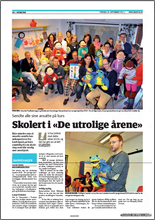 The Incredible Years in Norway- supported by the Norwegian Ministry of Health. Implementation of an evidence-based program series