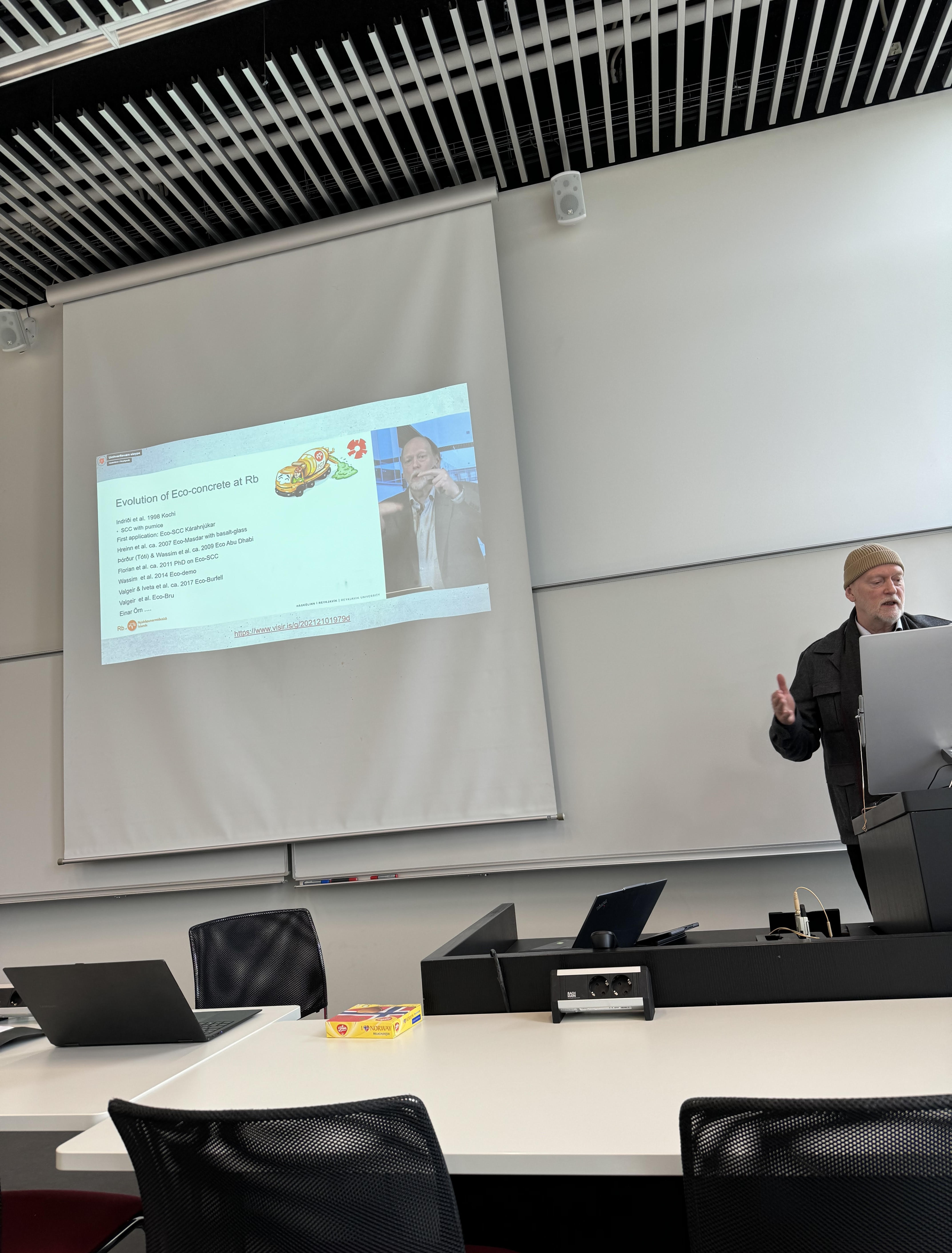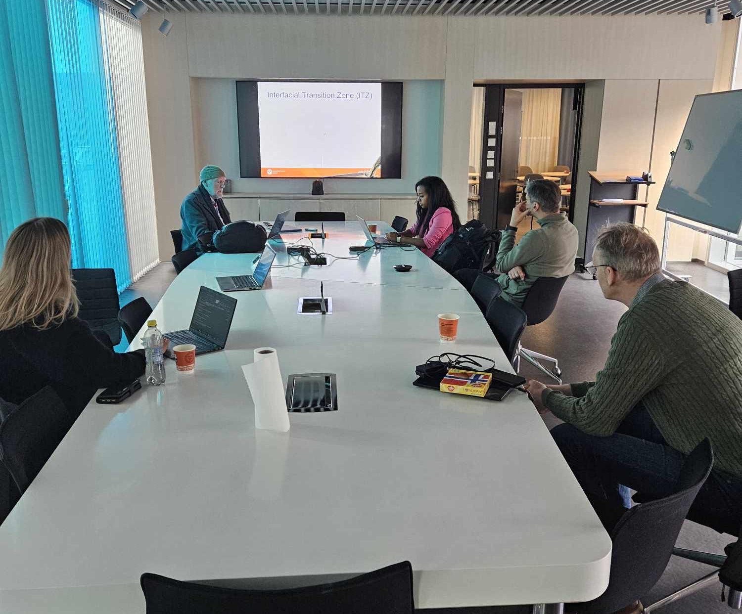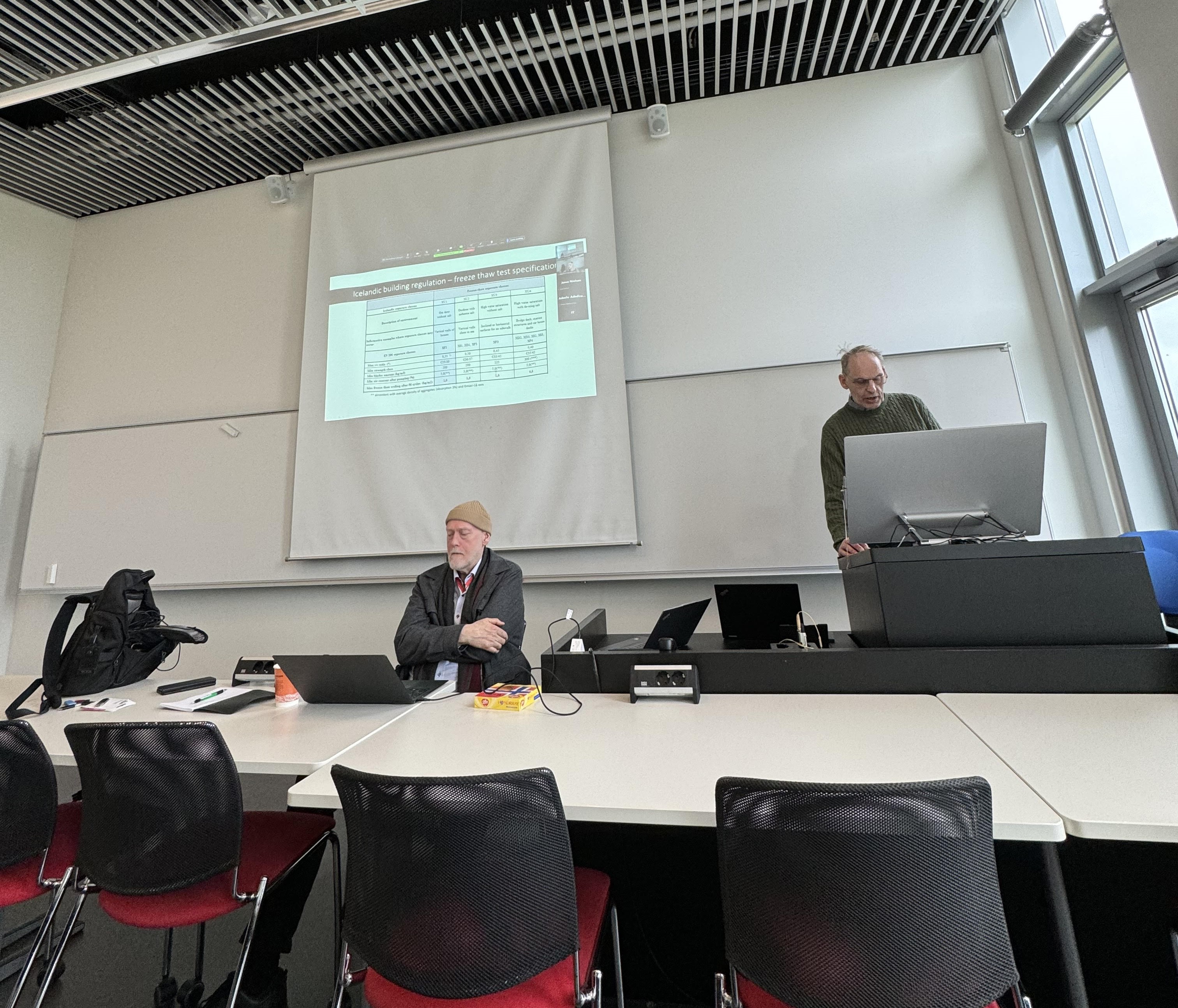 | After the seminar was over, there was a discussion on how the seminar went and what things to do in the remaining project years. There was also a discussion on the biggest challenges in making lower carbon footprint concrete in the north/arctic exposed to frost, and how to insure its frost resistance. | ![]() |