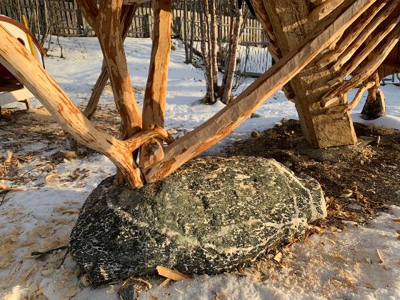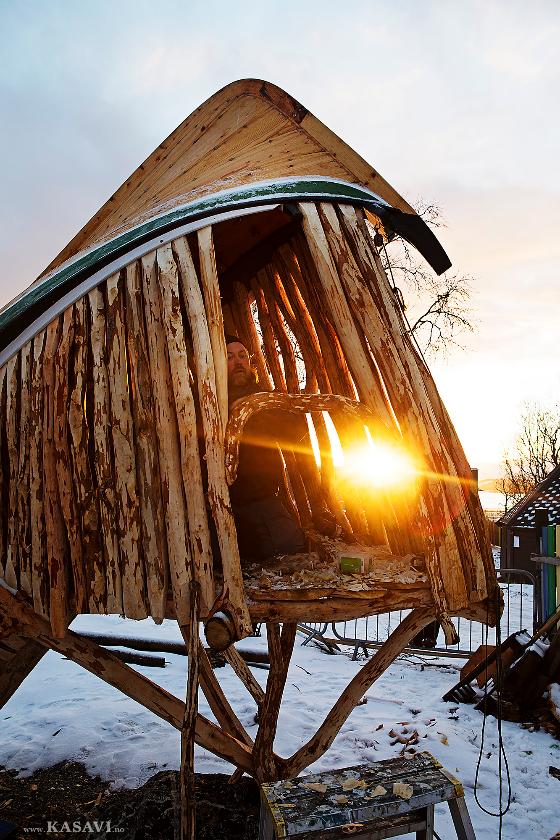 Furu til båten og trappa i lekeinnstalasjonen er fra Måselv. Bjørktilgitter og bealljit/buesperre er fra Tromsdalen.