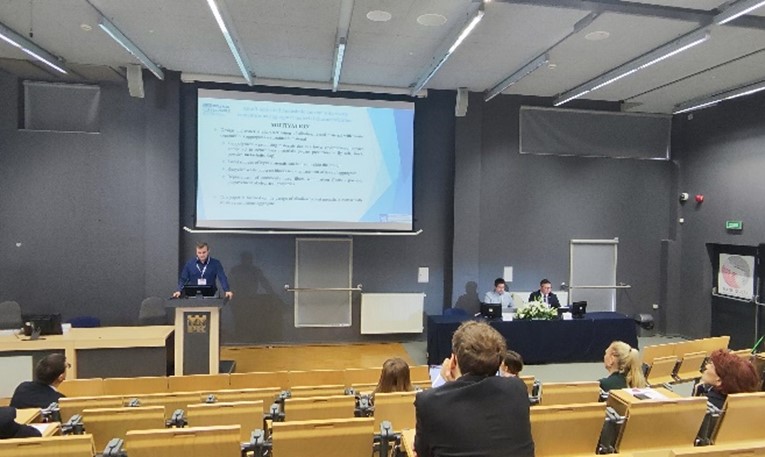 On the second day, Petr Hotek and Martin Mildner from the Czech Technical University in Prague, Department of Materials Engineering and Chemistry , presented their research work in two separate presentations. The lecture of Petr Hotek, entitled „Alkali-Activated Metashale Mortar with Waste Cementitious Aggregate: Material Characterization“, focused on the use of recycled aggregate obtained from waste concrete blocks and their impact on developed material properties. The second presenter, Martin Mildner, gave a lecture with the title „Fiber-Reinforced Alkali-Activated Materials Based on Waste Materials“, where he emphasized the need to use waste materials as a cement replacement.He also pointed out the need for the use of waste activators for alkaline activation, as the activator in geopolymer is the compound with the highest carbon footprint. Presentations were followed by a discussion during which important international contacts were established. GEOSUMAT project supported by M-Era.net . The conference was held in a very friendly atmosphere, which was supported by the pleasant environment of the conference facilitated by Polish scientists.