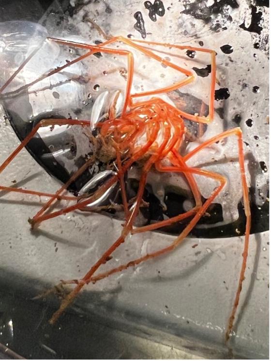 Nymphon gracile collected during the cruise, Foto: AnjuThe 18th and 19th of March was indeed a weekend well spent for the Fromm lab PhD student Anju Angelina Hembrom. The cruise on FF-Helmer Hansen was in the protected waters with some freshwater influence in Berg, Rystraumen, and Balsfjord region, and more oceanic water influenced areas of Malangen. She collected half a dozen of Brachiopods - Hemithiris psittacea, multiple individuals of Pycnogonida species - Nymphon gracile, Nymphon hirtum and another Nymphon sp., colonies of Bryozoan species – Crisisa eburnea and Securiflustra securifrons. What is even more interesting to know is that we only have limited information about the genomics of these groups and there are no sequence data publicly available for any of these species. Now that we have these specimens, we are really looking forward to sequencing the genomes and microRNAs of these individuals.Some we take for food! Anju making fillet with the students.