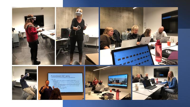 I hele høst har arbeidsgruppene produsert tekster, filmer, quiz og refleksjonsoppgaver. Vi har utforsket ny teknologi og arbeidet med oppbygging av flere digitale læringsressurser. I vår nye VR-lab som er under oppbygging har vi utforsket VR-teknologi, virtuelle rom, avatarer og andre digitale verktøy og laget interaktivitet i læringsressursene ved hjelp av 360 video og -bilder i verktøyene ThingLink og H5P.