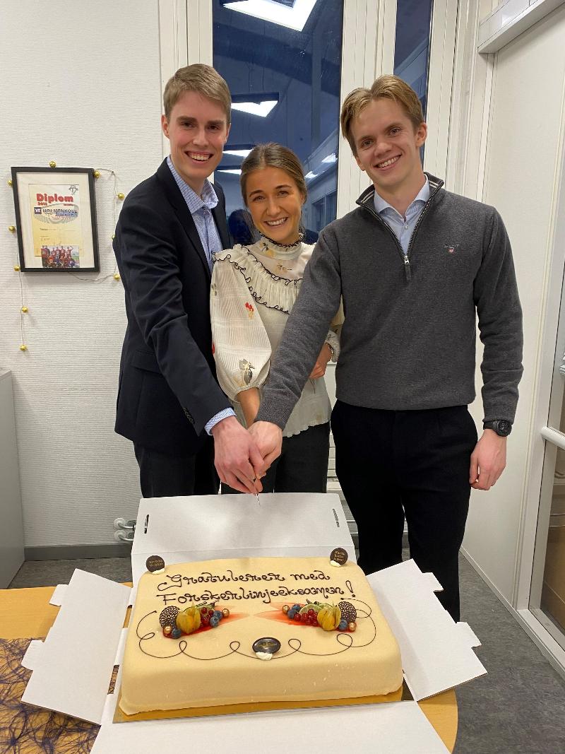 Feiring med kake etter forskerlinjeeksamen Foto: John-Bjarne Hansen