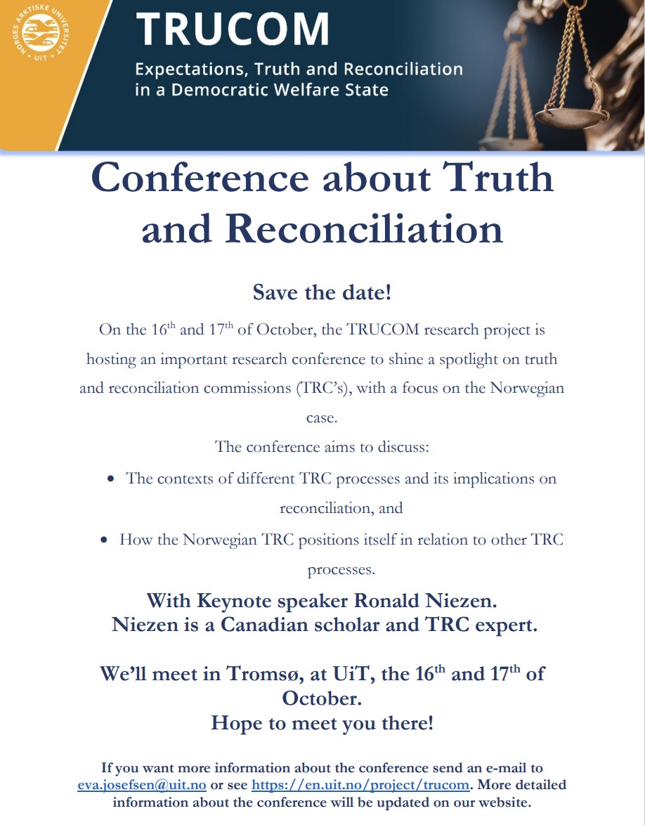 On the 16th and 17th of October, an important conference on the themes of Truth and Reconciliation is hosted at UiT Tromsø