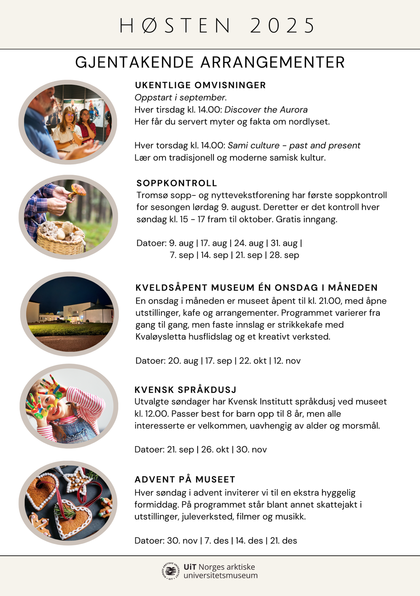 Barneaktiviteter, omvisninger, film, kreative verksted, diskusjoner og mer til - høsten ved museet byr på noe for enhver smak. Arrangementsprogrammet utvikles og oppdateres fortløpende. Følg med i våre kanaler for siste nytt.