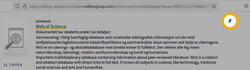 Det kan være lurt å lagre lenken til databaser du bruker ofte, da slipper du å søke opp databasen i Oria hver gang: